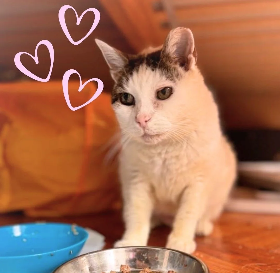 Madame is a lovely senior girl who just wants to cuddle on the couch after a long day. The matriarch of a 10+ cat colony, she could no longer handle the NYC street life when we met her in July 2024.